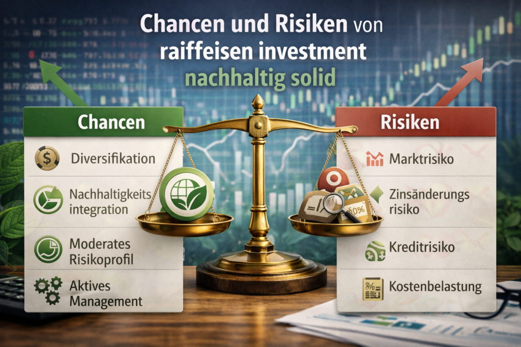 Die Struktur von raiffeisen investment nachhaltig solid bietet Diversifikation, regulatorische Transparenz und ein ausgewogenes Rendite-Risiko-Profil. Gleichzeitig bleiben marktbedingte Schwankungen, Zinsänderungsrisiken und Kostenfaktoren zu berücksichtigen.
